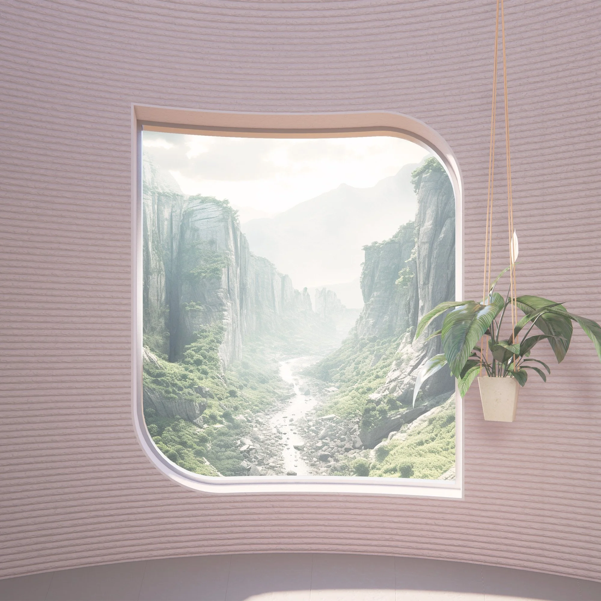 Tethered on four high-tensile suspension cables, Hanging Home does not occupy a footprint in the conventional sense - redefining what it means to be off the grid. Incorporating lightweight materials such as 3D printed fiber-reinforced foamcrete, lightweight aluminum substructure, and a range of passive mechanisms, it not only exemplifies a commitment to sustainable living, but also occupies a unique space that frames the surrounding landscape.